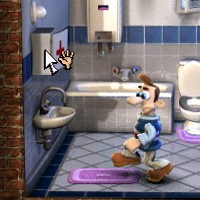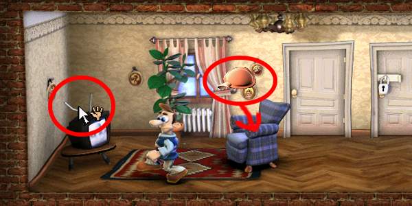 obligatorische Bierchen nicht fehlen.Immer wieder stapft er zum Kühlschrank um sich Nachschub zu holen.Wie soll Woody es da schaffen, ihm möglichst viele Streiche zu spielen? Am Anfang soll man als erstes auf die altbekannte Kommode klicken und im Bad