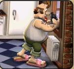 3. Folge: Do-it-yourselfWir gehen in den Keller und benutzen den Lappen und öffnen das Heizungsventil. Wir durchsuchen noch schnell die Werkbank, gehen zur Halle und öffnen die Kommode. Nun geht es in die Küche zum Abfalleimer, den entnehmen wir das Stromkabel. Wenn der Nachbar unten im Vorzimmer ist, schleichen wir uns hoch ins Schlafzimmer. Dort angekommen öffnen wir den Nachtisch und benutzen den Winkelschleifer auf dem Balkon.Nun geht es ab in das Arbeitszimmer, hier benutzen wir die Zange mit der Leiter und gehen zurück ins Schlafzimmer. Angekommen benutzen wir hier die Murmeln mit dem Schlafzimmerboden. Wir schleichen nun runter ins Wohnzimmer und benutzen mit der rechten Maustaste die Bauanleitung für den elektrischen Stuhl mit der des Schaukelstuhls. Jetzt schleichen wir in die Küche bis der Nachbar im Wohnzimmer ist, nun benutzen wir die Sicherung mit dem Sicherungskasten. Jetzt heißt es warten, wenn der Nachbar vom Kellergeschoss in die Küche geht. Nun gehen wir in das Kellergeschoss und verwenden hier das Stromkabel mit der Steckdose. Nun noch den Wasserhaupthahn öffnen, kurz warten bis der Nachbar von der Küche ins Bad geht und in den Schrank verstecken. |