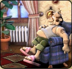 2. Folge: Alles was fit machtDa der Wanst des Nachbarn immer größer und dicker wird hat er sich entschlossen etwas für sine Fitness zu tun.Vom Gewichtheben über Yoga bis hin zum Trampolinspringen versucht er alles um seine Figur wieder in eine halbwegs erträgliche Form zu bringen. Doch Ruhe wird er keine finden wenn Woody unterwgs ist und ihn auf Trab bringt. Als erstes gehen wir in den Keller und nehmen die Autoteile mit die unter der Werkbank stehen und die Zange auch gleich mit. Wir entnehmen der Kommode die Murmeln, der Sporttasche den Rollschuh sowie das Gummiseil und dem Medizinschrank das Anabolika. Jetzt ab in die Küche und den Mülleimer mit der rechten Maustaste untersuchen. Wir begeben uns jetzt nach unten in das Vorzimmer und warten das der Nachbar in der Küche ist, nun gehen wir in das Schlafzimmer und holen und aus der Schublade das Buch der Knoten. Wir entschwinden jetzt auf den Balkon und nehmen die Säge vom Tisch. Wir nehmen das Buch der Knoten und kombinieren es mit dem Yoga Buch, das Anabolikum benutzen wir mit dem Fischfutter und die Autoteile mit dem Trampolin. Jetzt geht es ab ins Wohnzimmer, hier benutzen wir die Zange mit dem Hometrainer. In der Küche benutzen wir mit der rechten Maustaste den Rollschuh mit Küchenboden. Der Nachbar müsste jetzt im Schlafzimmer sein, drum geht es jetzt in den Keller. Hier benutzen wir die Säge mit der Hantel, das Gummiseil mit dem Expander und das Stromkabel mit der Steckdose. Wir gehen nun nach oben in das Vorzimmer und kombinieren hier die Murmeln mit dem Boden und benutzen das Sprungseil, wenn das erledigt ist geht es ab in den Schrank. Fertig. |