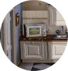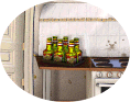 Wohnzimmer.Hier benutzen wir mit der rechten Maustaste die Reißnägel mit dem Sessel und den Essig mit dem Weine. Jetzt gehen wir in die Küche und schauen uns sein die Show an. |