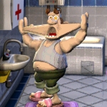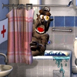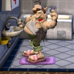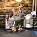 Nachdem das Abführmittel wirkt, rennt er schnell auf das Klo. Dort ärgrert er sich nicht nur wegen dem verunstallteten