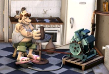 Level 3: Die Kabine ist vollWillkommen auf der Chinesischenmauer! Hier geht's richtig Rund, zuerst untersuchen wir einmal den Werkzeuggürtel der auf der oberen linken Mauer liegt und schrauben damit gleich am Fahrrad unten links herum. Danach stibitzen Sie einen Nylonstrumpf aus Olgas Handtasche und nehmen am Essenstand die Chillisuppe mit. Nachdem der Nachbar eine kleine Rede am Rednerpodest gehalten hat begeben wir uns dorthin und schnappen uns die Ölkanne und eine Kanonenkugel.Den eben erst gestohlenen Nylonstrumpf benutzen Sie dazu um den Generator in Gang zu bringen, welcher die zwei Soundanlagen rechts und links antreibt. Hat der Nachbar dann endlich sein Geschäft erledigt, kommen Sie ins Spiel. Mit der Chillisuppe heizen wir dem Nachbarn richtig ein, indem wir die Suppe auf das Klopapier geben. Mit der Ölkanne wir der Hebel an der Rakete geölt, sodass wenn er daran zieht von einer gigantischen Welle überflutet wird. Sind alle Fallen gelegt schauen wir nur noch zu und lachen herzhaft über den nichts ahnenden Nachbarn. |
