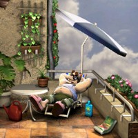 legen und den Schirm benutzen, sofort unter das Bett springen.Sobald der Nachbar auf dem Liegestuhl platz nimmt schleichen wir uns ganz nach unten in das Vorzimmer und verwenden die Bananenschale mit dem Boden, jetzt noch die Erde mit der Kaffeedose verwenden und in den Schrank verstecken (sollte der Nachbar noch nicht unten sein) sonst ins Wohnzimmer schleichen und abwarten. |