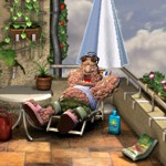 Zähneputzen legt der Nachbar sich auf den Balkon. Natürlich muß bei dieser Hitze auch Susi seine